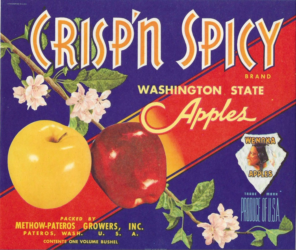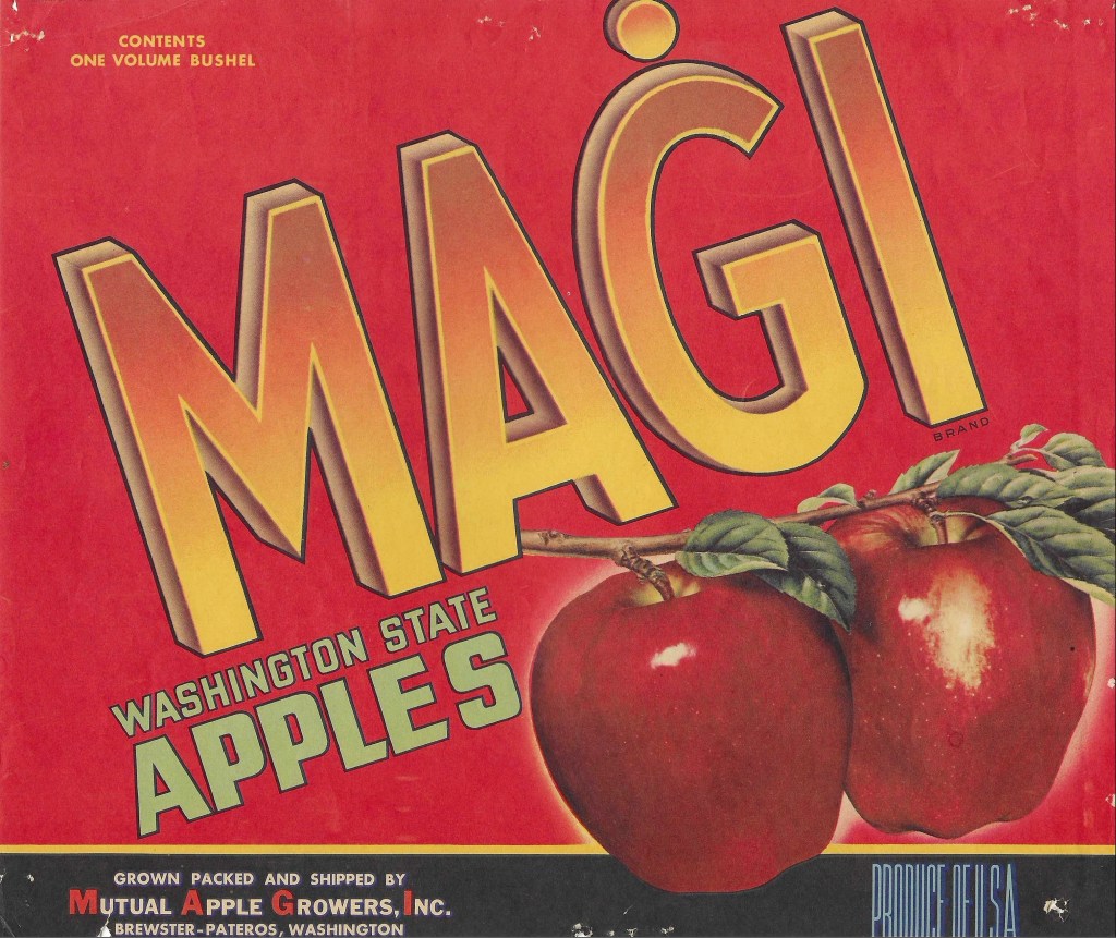 During these changes and mergers of various cooperatives throughout Pateros and north-central Washington, apples were occasionally sold under their former names (e.g., MAGI apples being sold as MAGI even after merging with Trout-Blue Chelan), but these mergers largely ended their unique independence and advertising. For MEPA, their Crisp’N Spicy apple labels are very well known, and the same is true for MAGI. Each had easily recognizable characteristics – a good thing for marketing and advertising apples throughout the U.S.