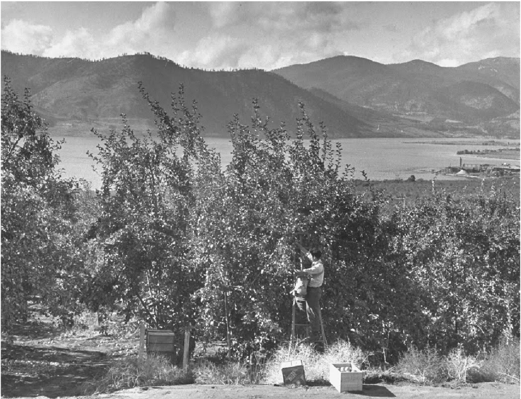 Later, in the 1950s, J.L. Cooper, his son Calvin Cooper, and J.L.’s son-in-law, Blaine Madden, planted orchards between Pateros and Brewster, next to orchards planted by John Neff (see below). They purchased 57 acres of land southwest of Brewster in 1947 and the Okanogan Independent reported that in 1950 the first trees were planted, including 300 Winesaps, 500 Starking Delicious, 50 Golden Delicious, and peach and pear trees as fillers. Additional plantings occurred in 1953 and 1955.