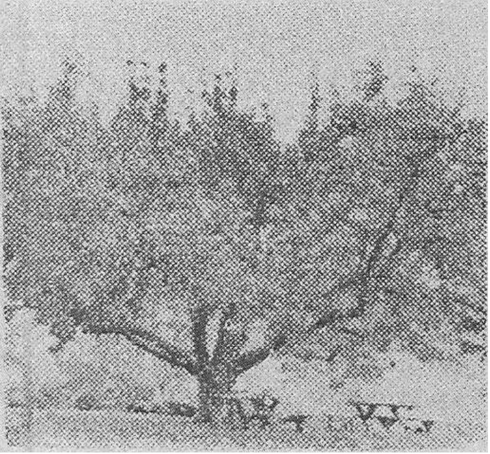 One interesting piece of apple tree history tied to the Cooper’s is that by 1955 a 63-year-old Red Astrakhan apple tree was still bearing large crops of apples annually at the original homestead (see photograph below). This indicates that the tree was planted in ~1892, by the previous owner of the Cooper orchards, Mr. Smith.