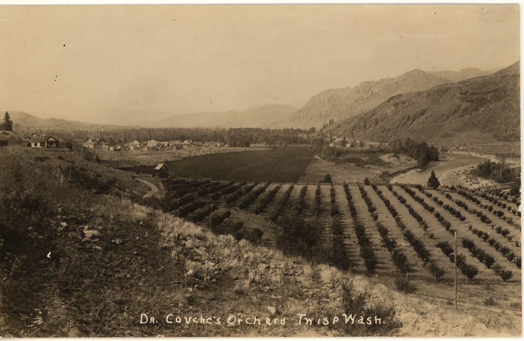 Originally from Birkenhead, England, Dr. James Buxton Couche arrived in the Methow Valley in 1900 after working and living throughout Canada, the U.S., and Mexico (History of North Washington 1904). After graduating with his medical degree from Toronto University in 1899, and spending time in Molson, Washington (among other locations), he settled in Twisp and opened a physicians practice. The 1904 History of North Washington described that “Dr. Couche has won for himself a practice that bespeaks both ability and energy, while his standing with the people is of the very best. He owns various mining property and also has a homestead adjoining the town of Twisp.” Okanogan County property records suggest that Dr. Couche’s homestead was located near the modern-day juncture of Highway 153 and Highway 20.